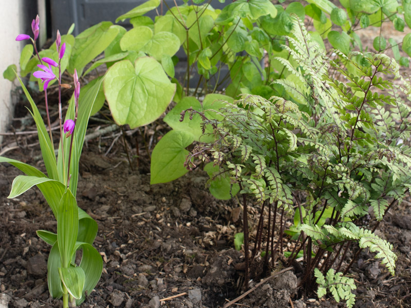 Les orchidées du genre Bletilla, originaire des forêts d’altitude persistantes de Chine, produisent des feuilles lancéolées vert clair et plissées, un peu arquées, à nervures marquées, de 35 cm de long sur 5 cm de large. Entre mai et juin, émergent des touffes des hampes graciles, portant plusieurs grandes fleurs. Elles sont typiques de la famille, avec un grand pétale central modifié en « tunnel » que l’on nomme le labelle. Elle s’étend lentement par de courts rhizomes, finissant par former une touffe plus ou moins clairsemée selon la richesse du sol. [Promesse de fleurs]