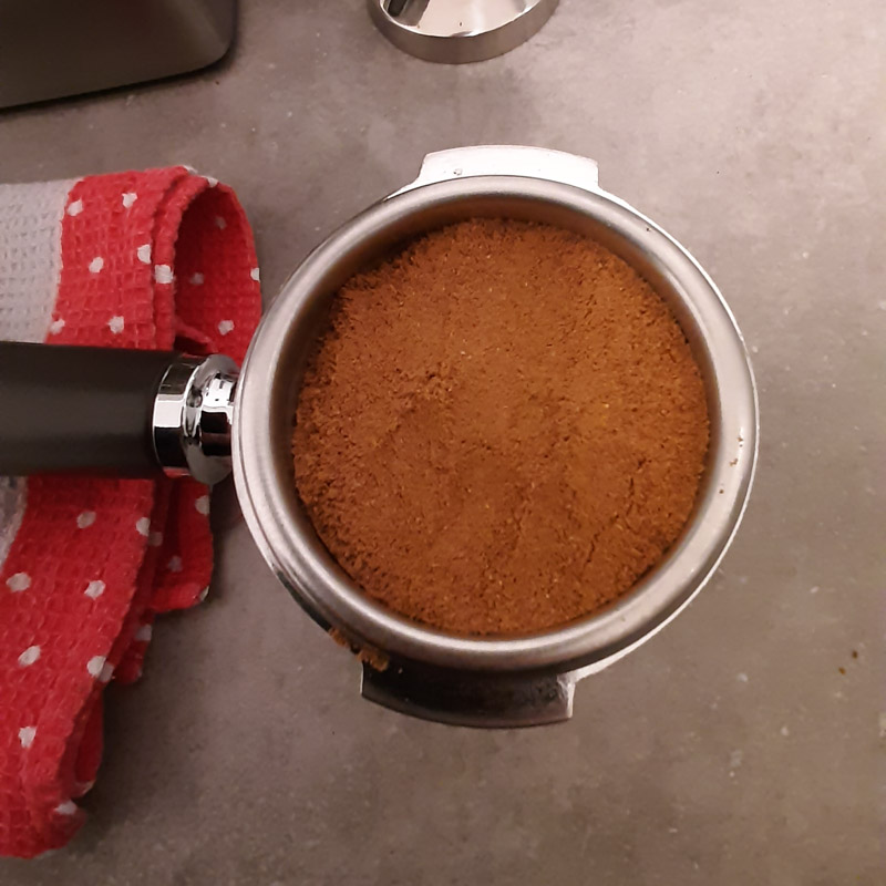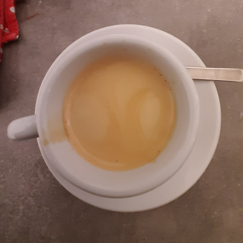 Sinon j’ai tenté l’expérimentation de me faire une tasse uniquement avec une partie des 25 grammes de grains de couleur beige clair extraits du paquet. Voici les photos de la mouture avant extraction et du café en tasse… Le goût était à mi-chemin entre une boisson chaude style dosette Nespresso et eau de vaisselle. Intéressant.